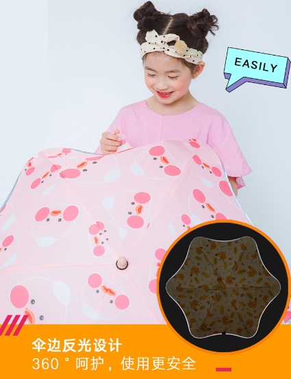 3. 19-inch 6-bone children's easy push-pull safe rounded corner umbrella.