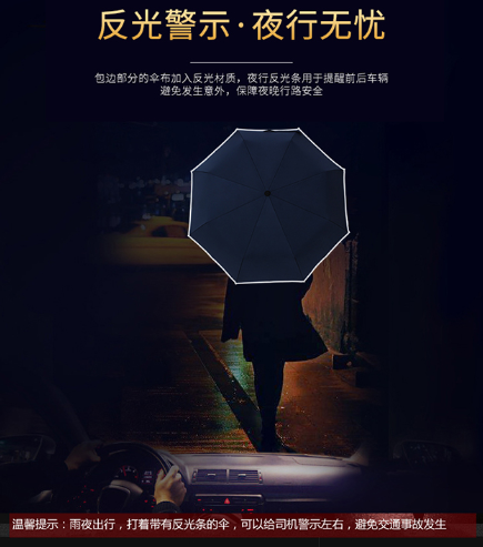 Do you sometimes feel unsafe going out at night on a rainy day? Especially if you are walking on a dark street, you are particularly worried that the car or others will not see you walking under the umbrella. Now Okai Umbrella Industry has launched a safety reflective umbrella, which is professional for you to escort a safe trip. Both adult and children's styles are available. So what are the styles of umbrella with this safety reflective umbrella?